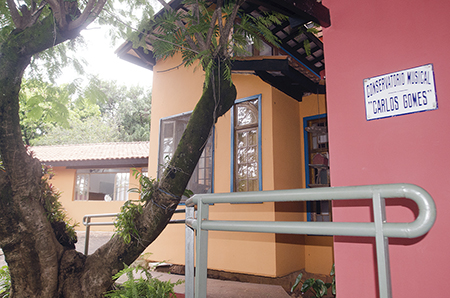 Pela extensa área verde do novo endereço do Conservatório Carlos Gomes, com tradição de 88 anos e agora instalado em área de 5 mil m2 no bairro Santa Cândida, a diretora Léa Ziggiatti anda com passos curtos rumo ao salão de concertos que é palco para os alunos apresentarem pequenos musicais aos sábados. No meio do caminho faz uma pausa para cumprimentar as crianças que entram e saem das salas de aulas.