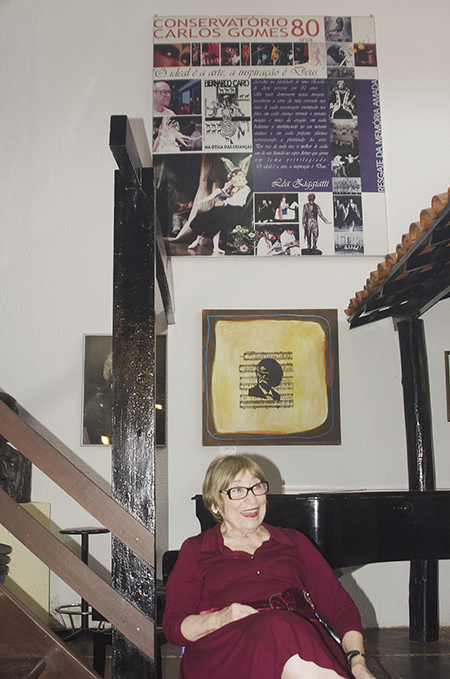 Tranquilamente chega à porta da sala e senta-se próximo ao amigo conhecido de longa data, um piano de calda preto. Pianista e Flautista Doce por formação, Léa Ziggiatti é também bacharel em Direito pela PUC Campinas, escritora e jornalista com atuação nos jornais da cidade. Atrás dela, um busto e dois belos quadros da lenda que dá nome ao conservatório, o maestro Carlos Gomes.